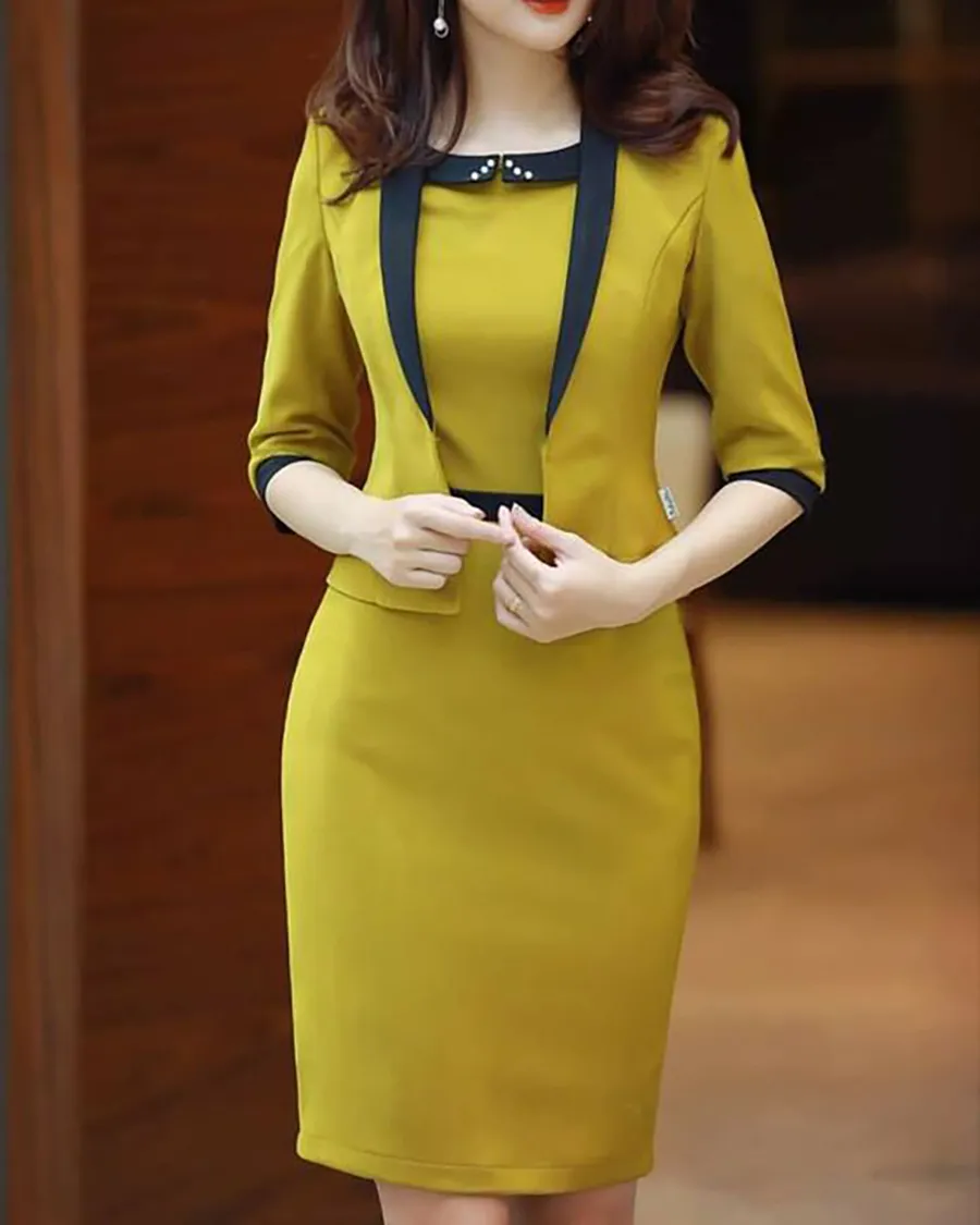 Ladies Elegant Contrast Color Versatile Dress