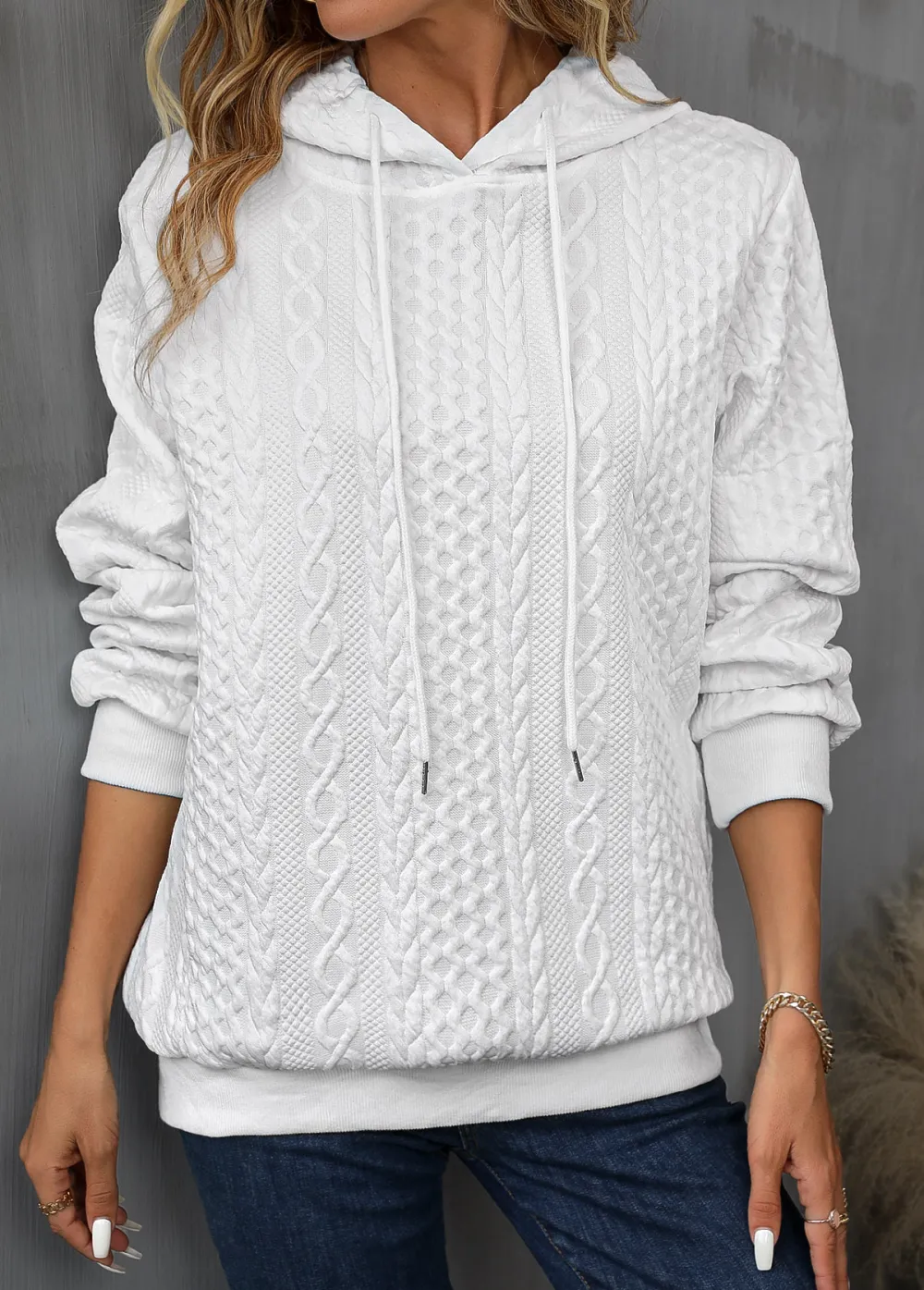 White Drawstring Detail Long Sleeve Hoodie 734317