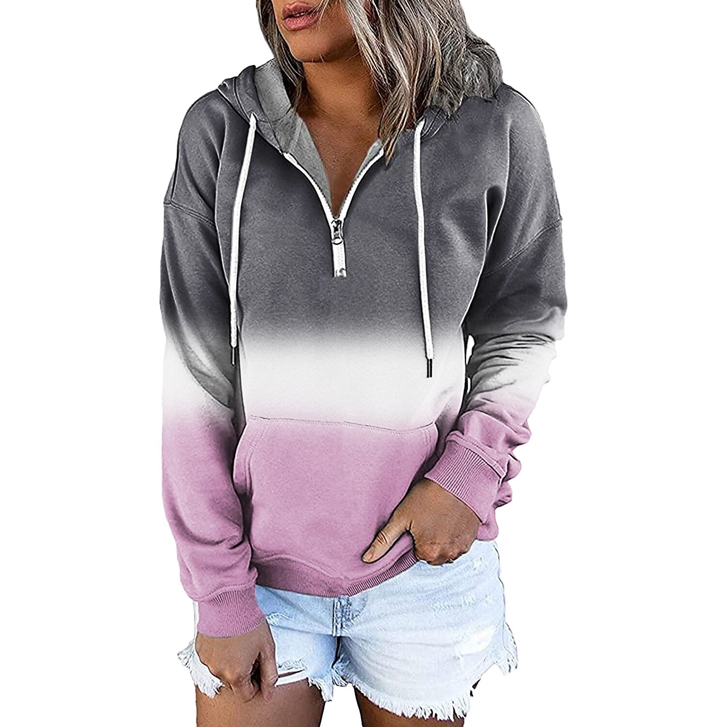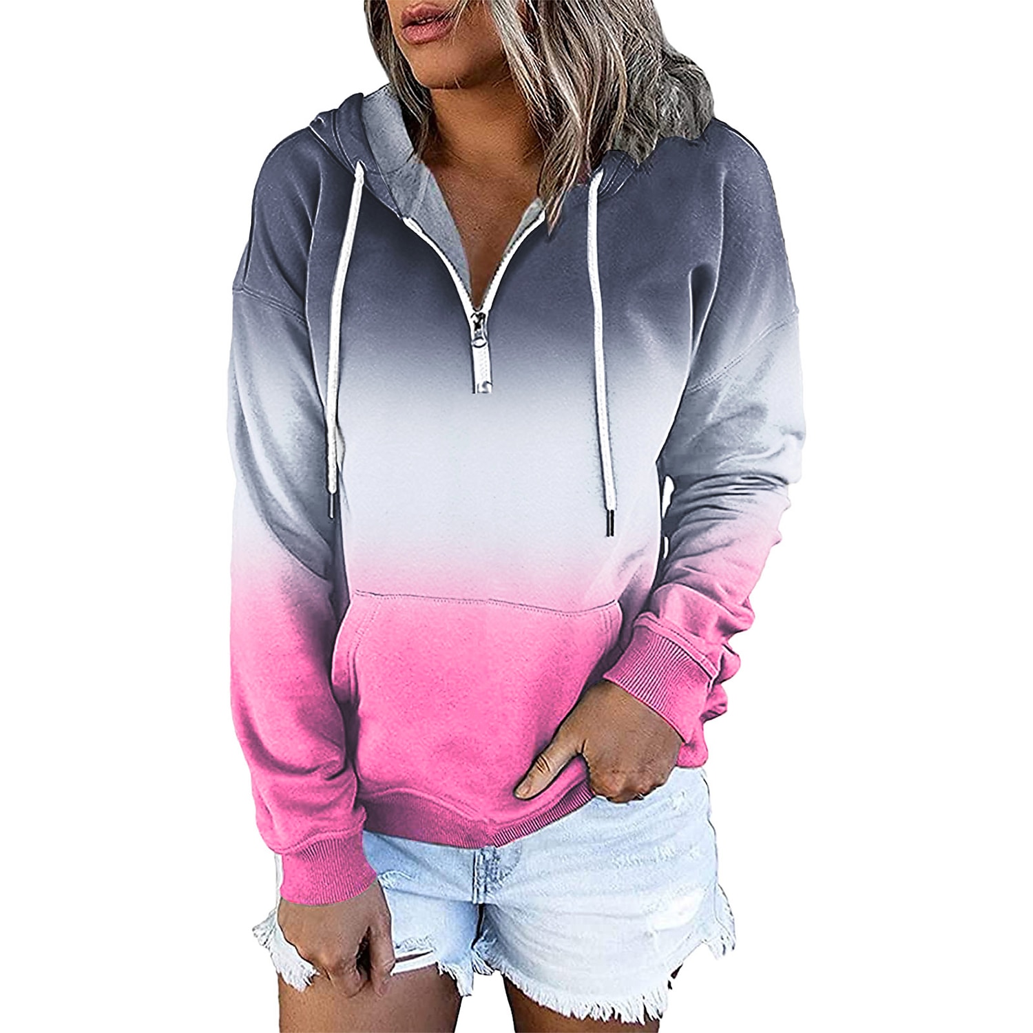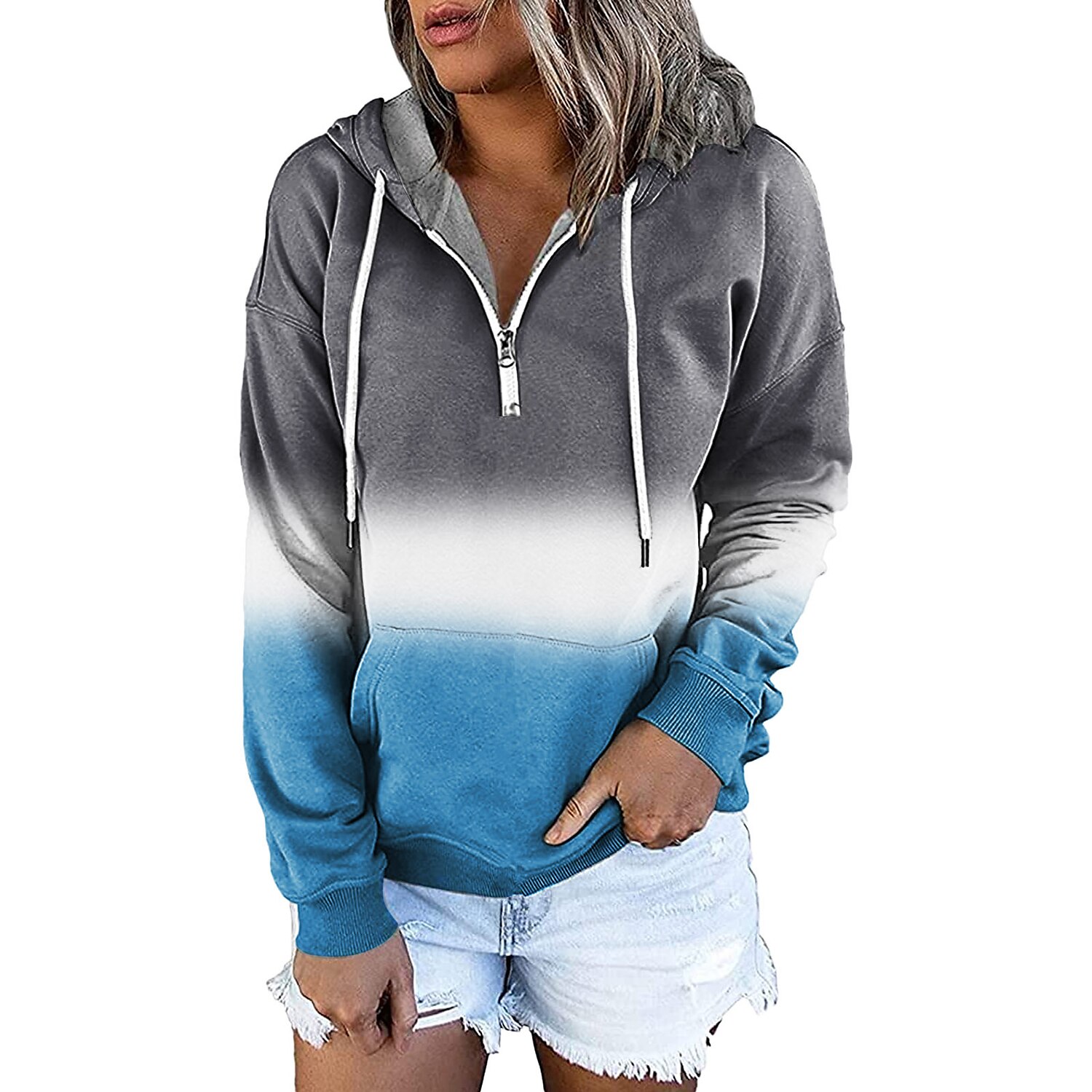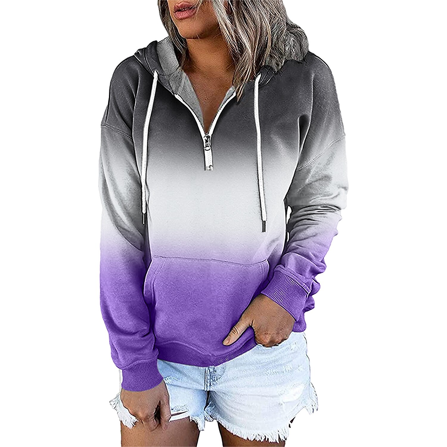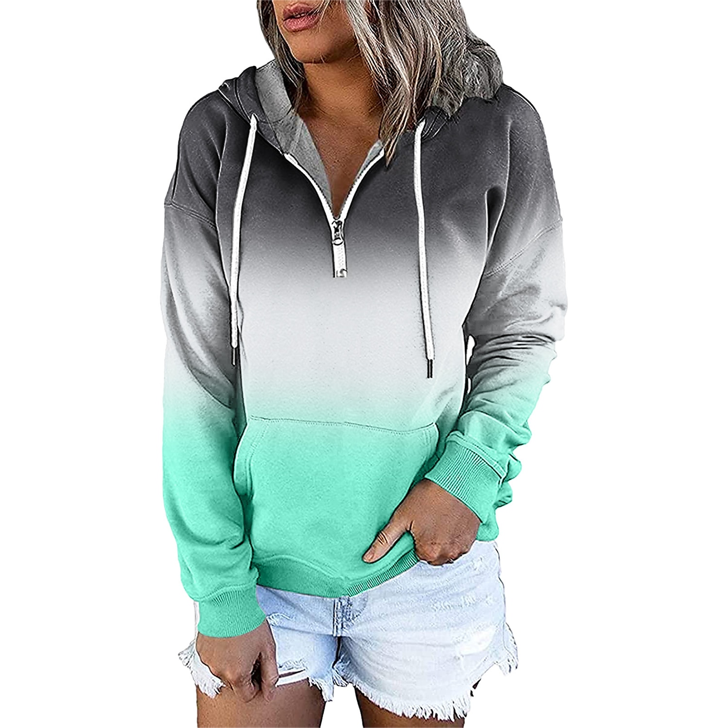 Women's Hoodie Sweatshirt Pullover Streetwear Casual Front Pocket Green Blue Purple Gradient Casual Hooded Long Sleeve S M L XL XXL