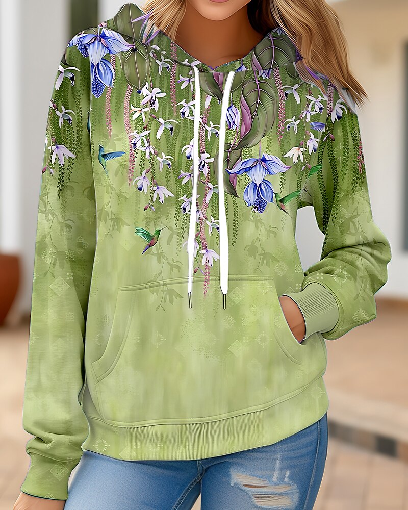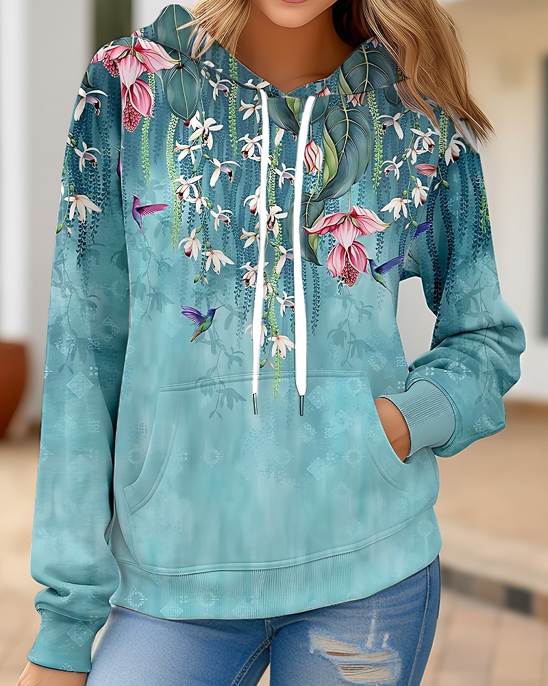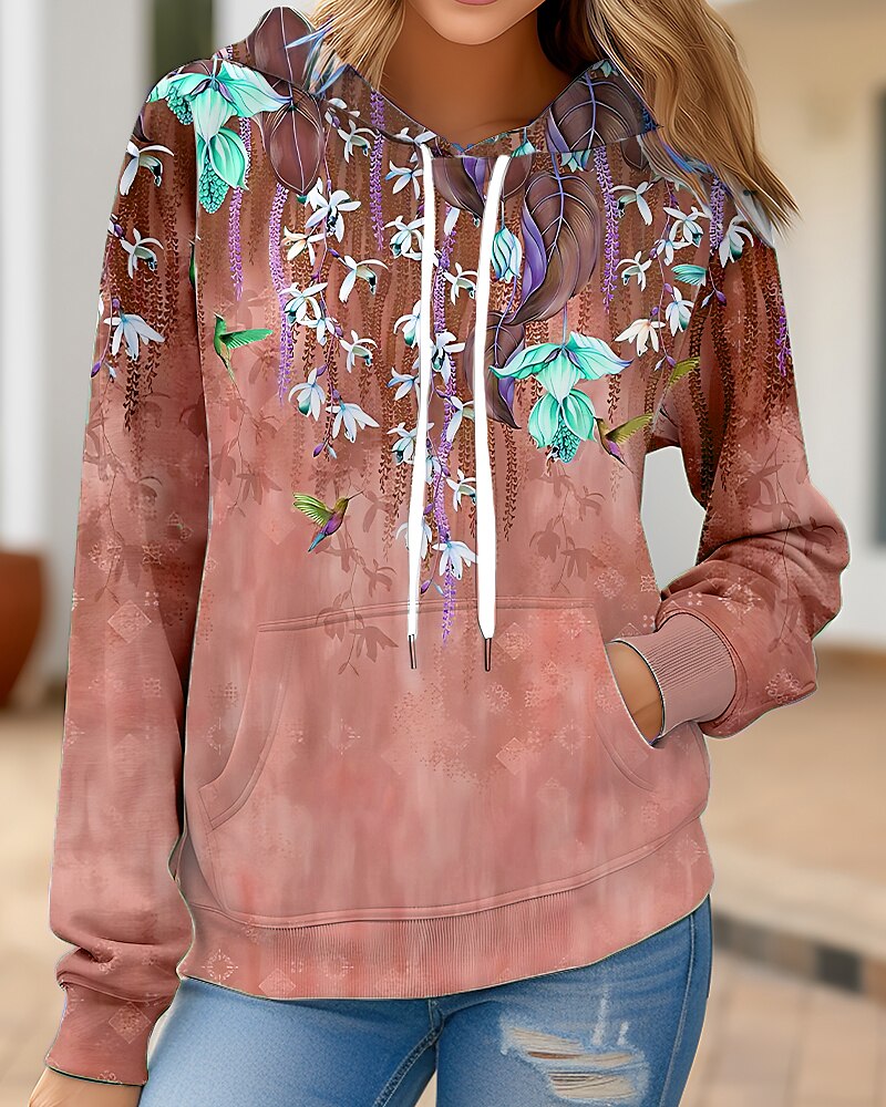 Gender:Women's,Style:Vintage,Basic,Occasion:Casual,Street,Sports Clothing Sub Category:Hoodie Sweatshirt,Pullover,Neckline:Hoodie,Fabric:Polyester,Design:Front Pocket,Sleeve Length:Long Sleeve,Elasticity:Micro-elastic,Look After Me:Washable,Wet and Dry,Machine wash,Top Length:Regular,Pattern:Floral,Season:Fall & Winter,Details:Top,Fit Type:Regular Fit,