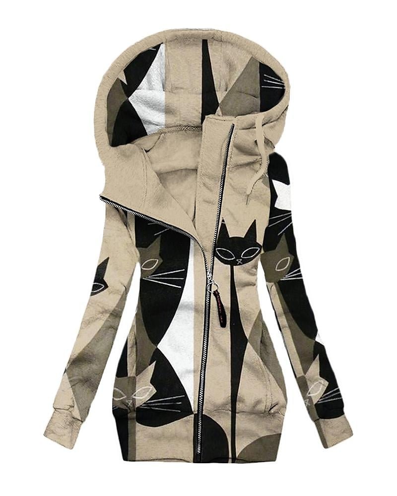 Gender:Women's,Style:Neon & Bright,Sports,Basic,Occasion:Casual,Street,Sports Clothing Sub Category:Zip Hoodie Sweatshirt,Neckline:Hoodie,Design:Drawstring,Front Pocket,Zip Up,Sleeve Length:Long Sleeve,Elasticity:Micro-elastic,Look After Me:Machine wash,Washable,Wet and Dry,Top Length:Regular,Pattern:Cat,Floral,Graphic,Season:Fall & Winter,Details:Top,Fit Type:Regular Fit,