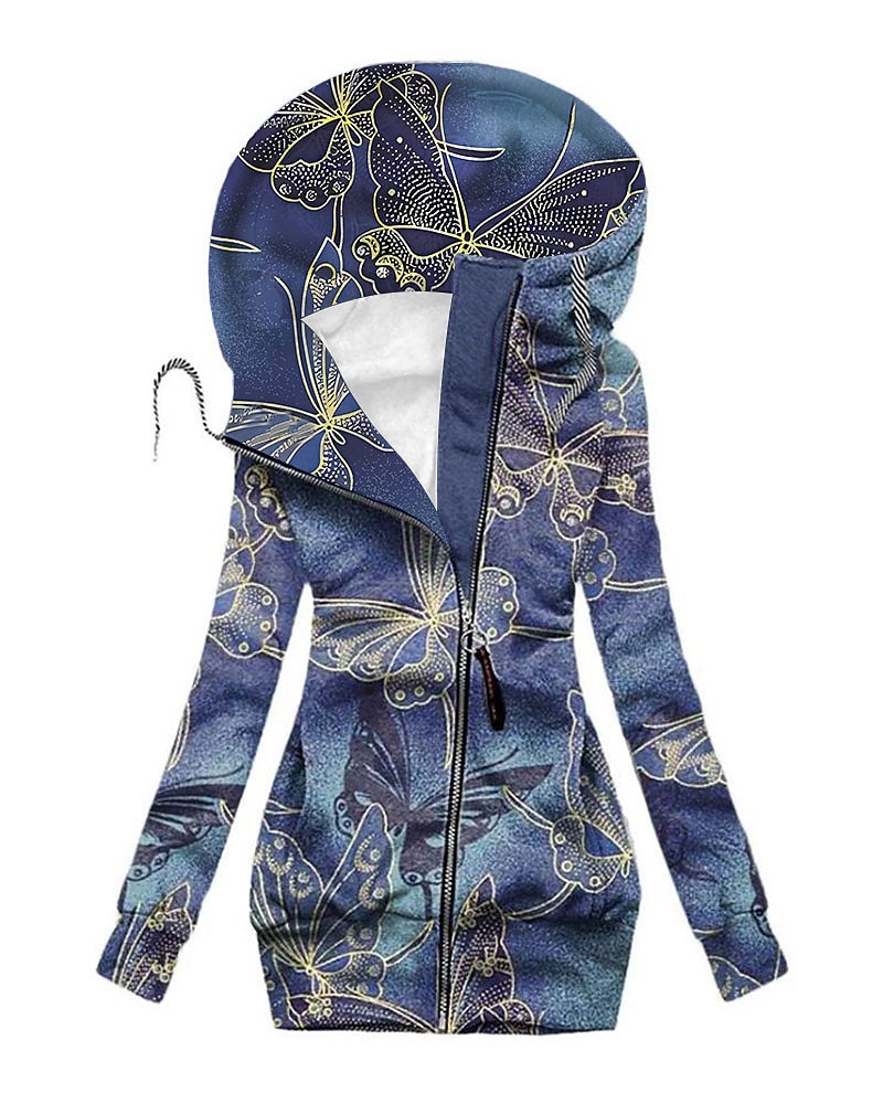 Gender:Women's,Style:Streetwear,Occasion:Casual,Street,Sports Clothing Sub Category:Zip Hoodie Sweatshirt,Neckline:Hoodie,Fabric:Polyester,Design:Zip Up,Sleeve Length:Long Sleeve,Elasticity:Micro-elastic,Look After Me:Washable,Wet and Dry,Machine wash,Top Length:Regular,Size Suggestion:standard size, select your usual size,Pattern:Butterfly,Geometric,Floral,Season:Fall & Winter,Details:Top,Fit Type:Regular Fit,